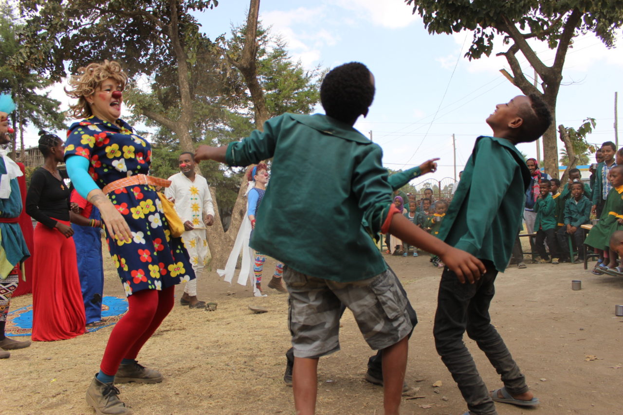C’est très rapide, très intense, il faut tout de suite utiliser les compétences de chacun et les articuler pour créer un spectacle. Ce ne sont pas que des clowns, ce sont aussi des artistes du spectacle vivant : des comédiens, des circassiens, des acrobates, des musiciens, des marionnettistes, etc. Pour chaque pays c’est un spectacle unique en partenariat avec les artistes locaux comme je le disais tout à l’heure. Ce qui permet d’intégrer aussi une dimension culturelle dans le spectacle et de guider un peu le choix artistique qui est fait. Par exemple, il y a des choses qui sont drôles dans des pays et pas du tout dans d’autres. C’est un petit détail, mais il faut le prendre en compte. Il n’y a pas beaucoup de paroles dans nos spectacles, mais quand il y en a cela permet aussi de pouvoir s’adresser au public dans la langue locale.